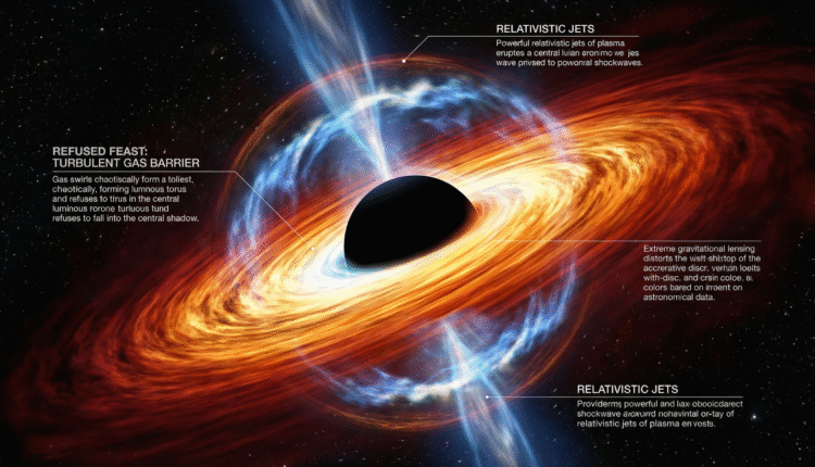 Para que a matéria finalmente caia, ela precisa perder esse momento angular. Isso acontece através da turbulência e do atrito dentro de um disco de acreção, a estrutura espiralada que se forma ao redor do buraco negro. Se a turbulência for insuficiente, o gás fica preso em uma órbita estável.