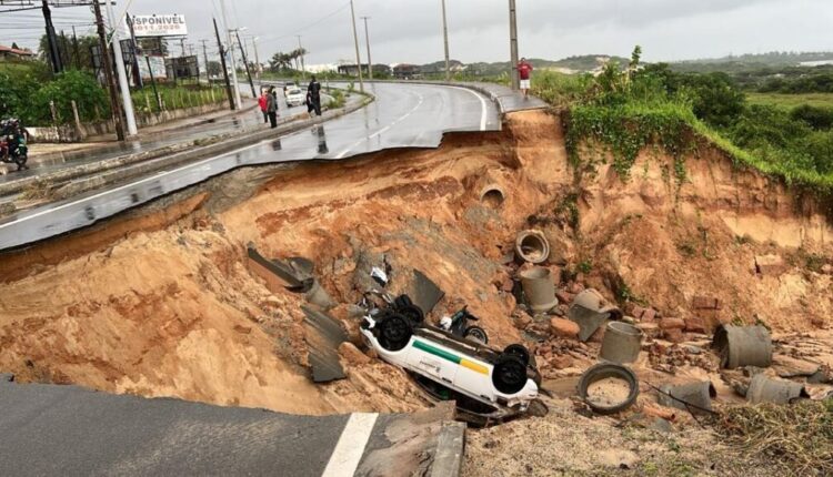 Cratera se abre na CE-025 e engole veículos no porto das dunas, em Aquiraz