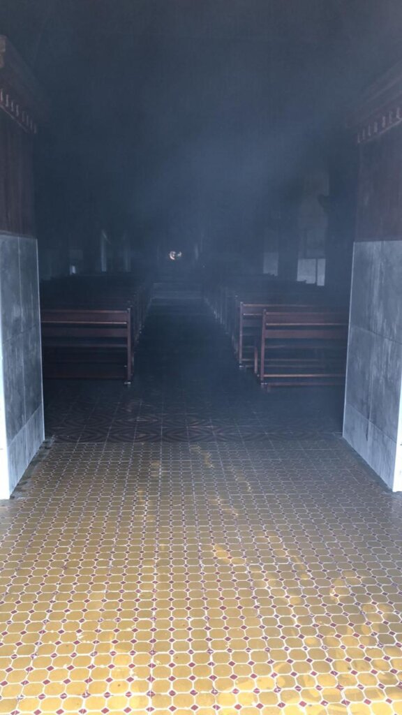 Imagens compartilhadas nas redes sociais mostram a gravidade da situação. É possível ver moradores forçando as portas da igreja para liberar uma densa fumaça preta. Os vídeos também revelam os estragos internos provocados pelas chamas, com detalhes que impressionam qualquer pessoa.