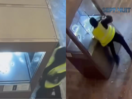 O vídeo mostra um homem encapuzado, todo de preto e com um colete amarelo, diante de uma vitrine na Galeria de Apolo. Ele opera uma máquina para serrar a estrutura de proteção das joias. A precisão do movimento indica um planejamento meticuloso e conhecimento prévio do local.