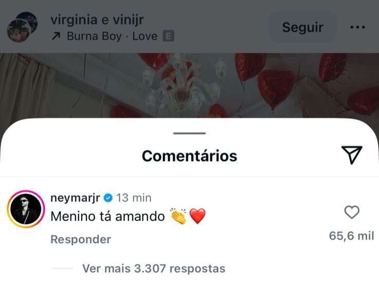 A reação dos famosos também foi um espetáculo à parte. Neymar Jr., grande amigo de Vini Jr., foi um dos primeiros a comentar o post do pedido. Ele deu sua bênção ao casal e ainda soltou uma brincadeira característica. A mensagem do astro do futebol arrancou risadas e ganhou destaque nos comentários, mostrando a cumplicidade entre os dois jogadores.