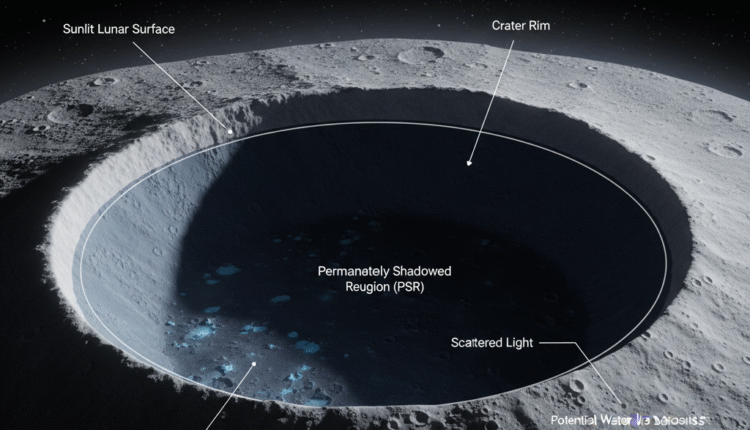 A Lua guarda segredos em suas sombras eternas. Nos polos lunares, existem crateras tão profundas que a luz do Sol nunca as alcança. Por décadas, cientistas acreditaram que essas regiões poderiam esconder vastos depósitos de gelo de água.